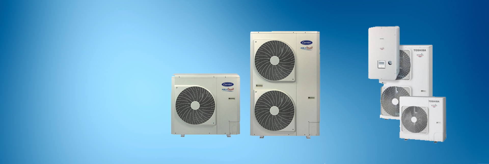 The CARRIER and TOHHIBA heat pumps are divided into monobloc and split type. They have variable speed compressors and have high C.O.P. They can be used in Floor Heating and Cooling applications , also in Heating and Cooling with Water Terminal Units (F.C.U S) and in Heating with Heaters.