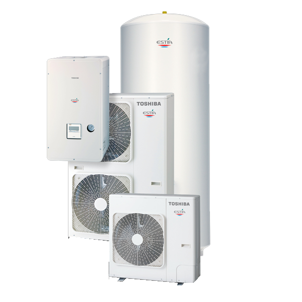 Heating for domestic applications. An alternative heating solution. Toshiba’s air-to-water heat pumps are the ideal solution for increasing energy savings, as they use air as the primary energy source. This all in one system is designed to provide the right temperature for heating, hot water production and the added advantage of air conditioning during the summer months.